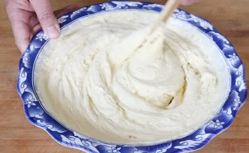 5.拌和成面漿,蓋外蓋,醒面2倍大,見到里邊全是蜂窩狀,再次拌和。